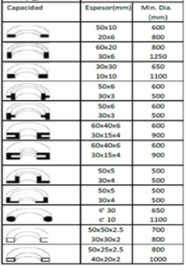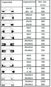 Curvadora, han sido concebida para reducir al máximo el coste de fabricación y dar las máximas soluciones de rolado en tubos y perfiles. Fabricada para rolar diferentes perfiles como la solera, doblado de perfil en T, rolado de perfil en U, curvado del ángulo, doblar barra maciza, tanto cuadrada como redonda, realizar espirales en tubo o cuadrado, rectangular o redondo en diferentes materiales como : acero al carbono, inoxidables, latón, cobre, aluminio. La finalidad de estos doblados son la fabricación de invernaderos, mesas, sillas, protecciones de automóvil, puertas, ventanas, rejas, en fin una infinidad de productos metálicos